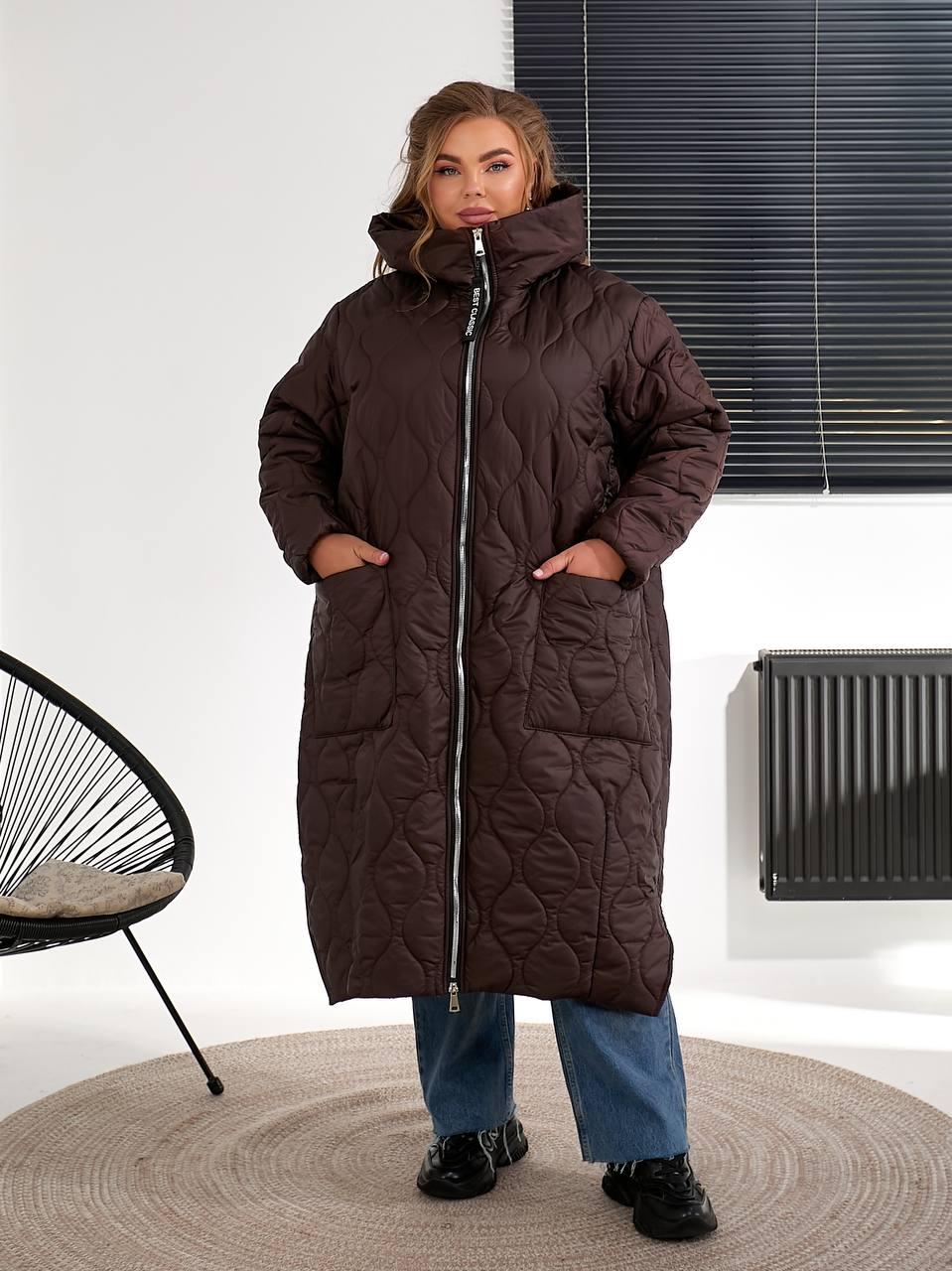 Зимове жіноче пальто шоколад великого розміру батал Розміри: 56-58, 60-62, 64-66, 68-70, 72-74
